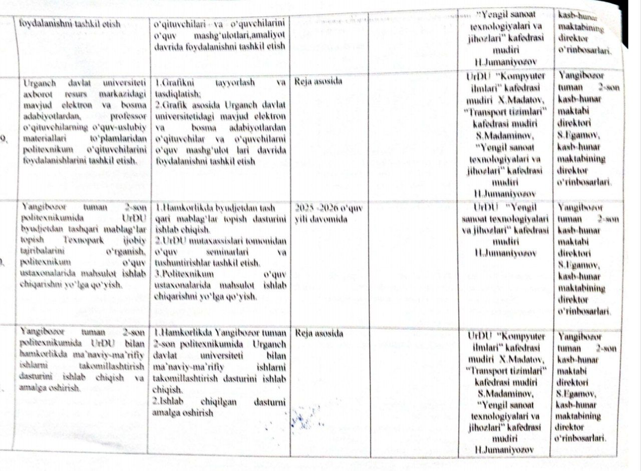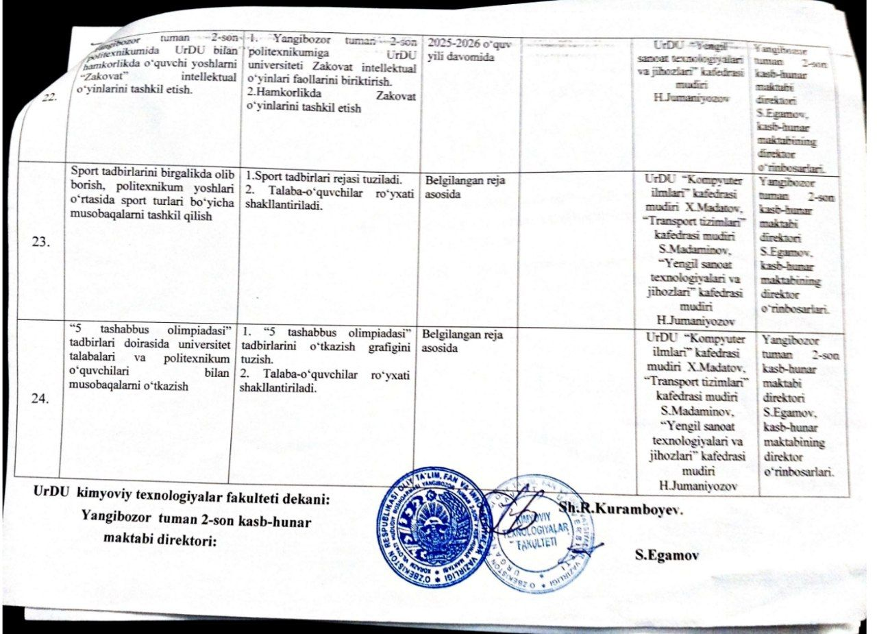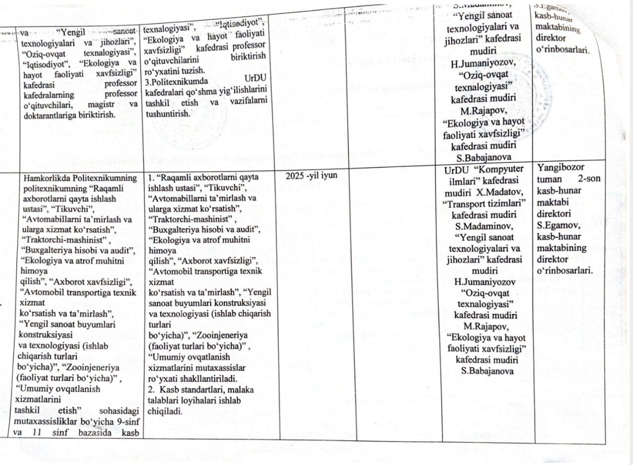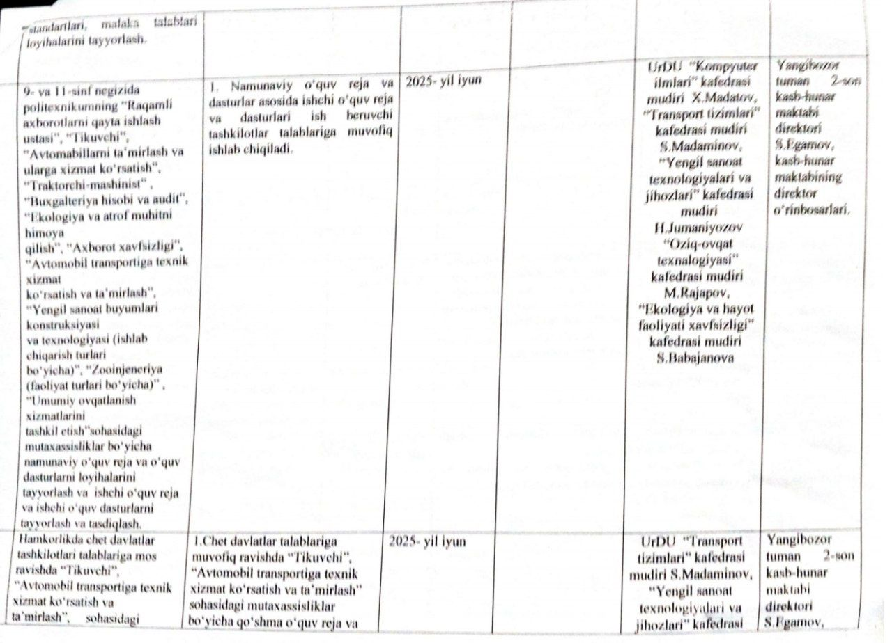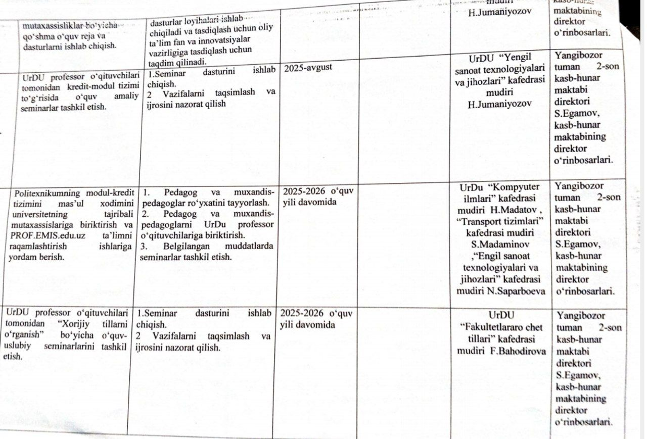 Yangiliklar 14-02-2025, 12:45 Yangibozor tuman 2-son politexnikumi faoliyatini yanada rivojlantirish, ta'lim sifatini oshirish hamda ish beruvchilar bilan hamkorligini yanada kuchaytirish bo'yicha yo'l xaritasi